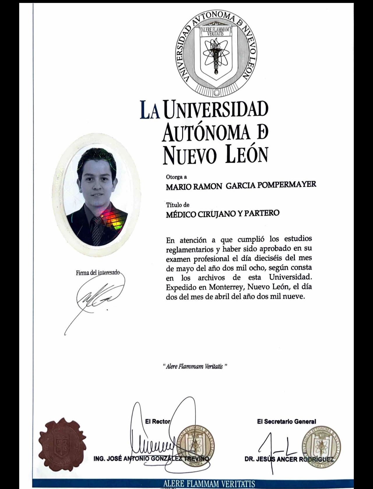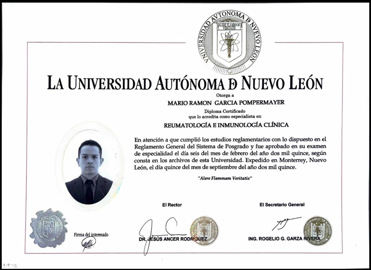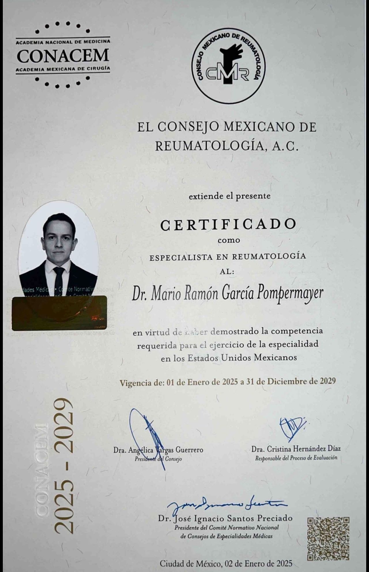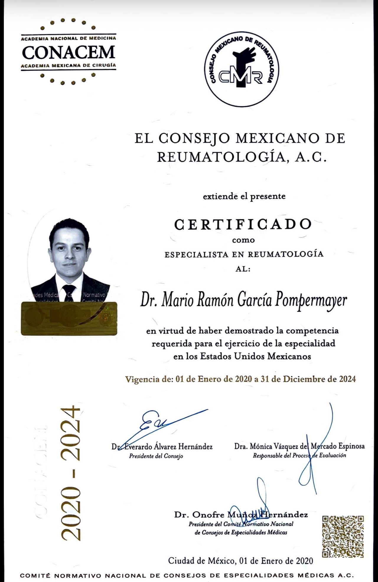 El Dr. Mario R. Garcia Pompermayer es un médico especialista en Reumatología e Inmunología Clínica. Egresado de la Facultad de Medicina y Hospital Universitario de la Universidad Autónoma de Nuevo León (UANL) en Monterrey, NL, México.