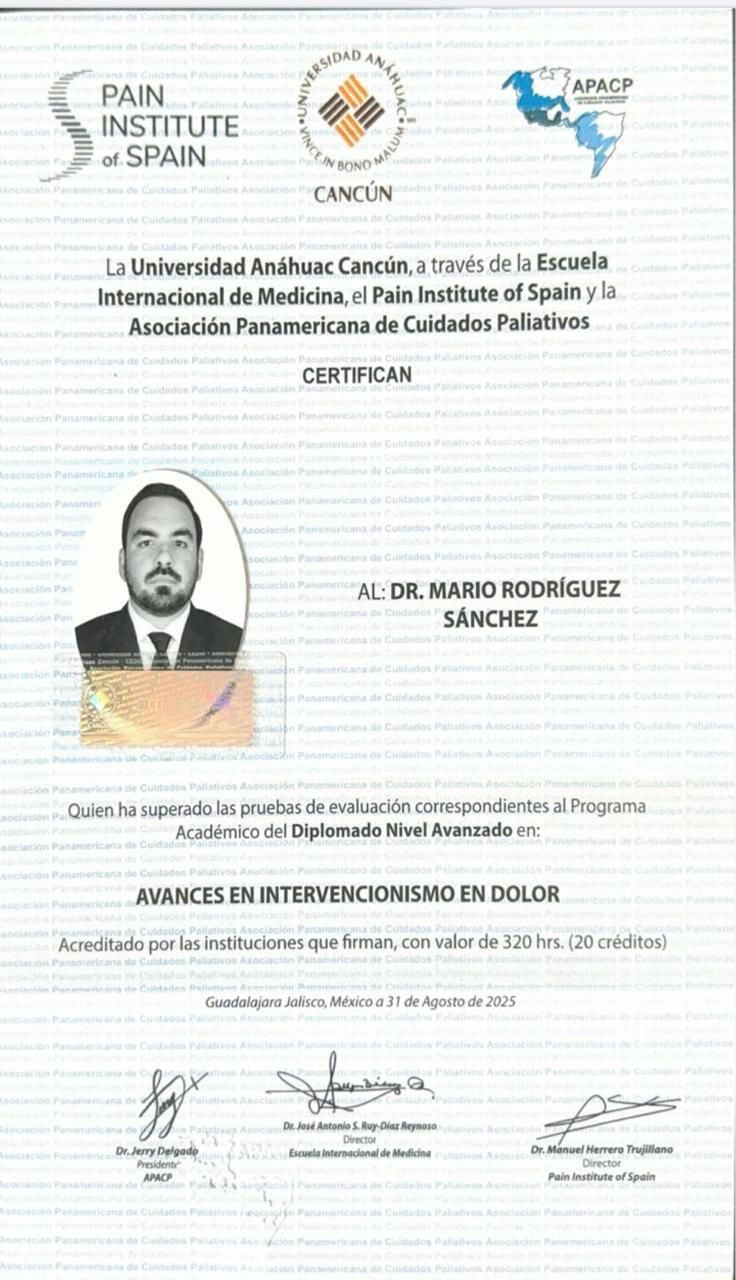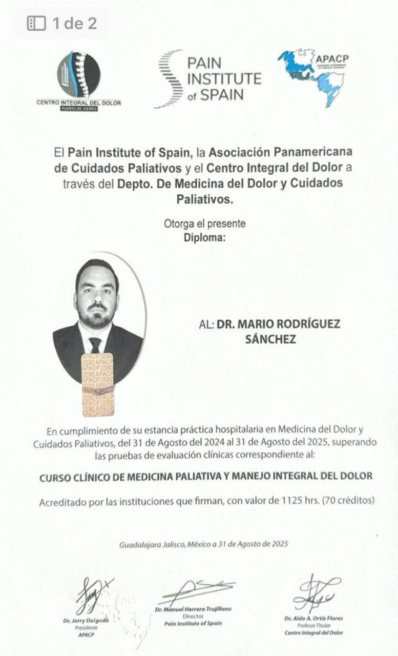 Quisiera recomendar al Dr. Mario, fue muy atento para mi familia en momentos difíciles, muy amable y empático. Además de estar disponible para cualquier duda o pregunta. Excelente médico y persona. No duden en solicitar sus servicios para cuidados paliativos, fue la mejor opción. Gracias por todo.