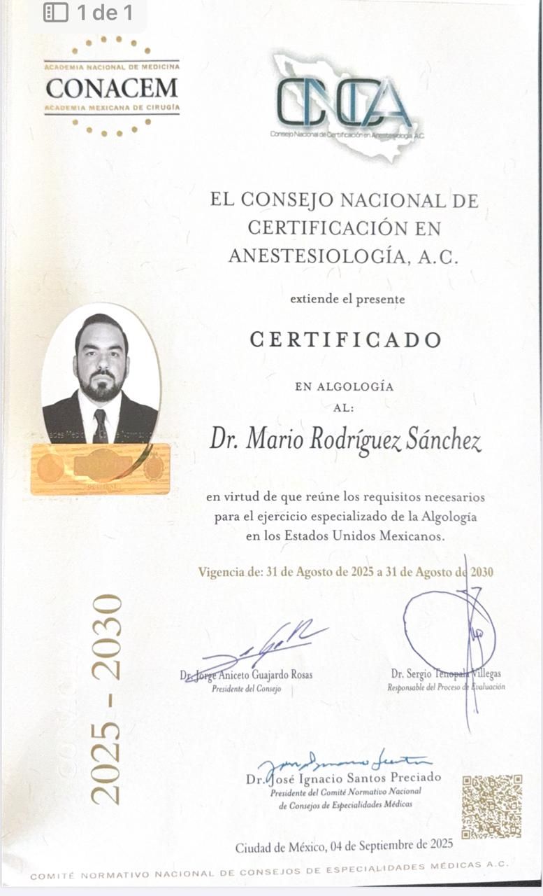 Un excelente profesionista, el procedimiento aplicado a mi neuralgia postherpetica fue muy eficiente, me ha ayudado mucho a mi recuperación y calidad de vida. Un agradecimiento.