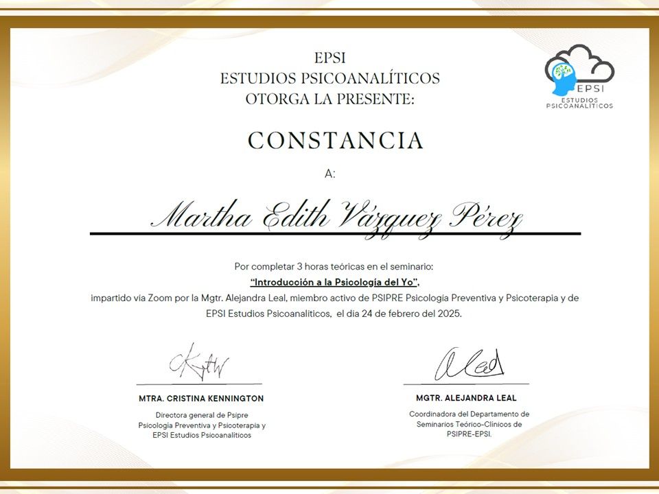 Soy psicoterapeuta con enfoque psicoanalítico y te acompaño en un proceso de autoconocimiento profundo para comprender tus emociones, pensamientos y patrones inconscientes que influyen en tu vida. Con el objetivo de ayudarte a transformar el malestar en crecimiento personal a través de un espacio seguro, libre de juicios con escucha activa. Si buscas un proceso terapéutico que te ayude a entender mejor y mejorar tu bienestar estaré encantada de acompañarte.