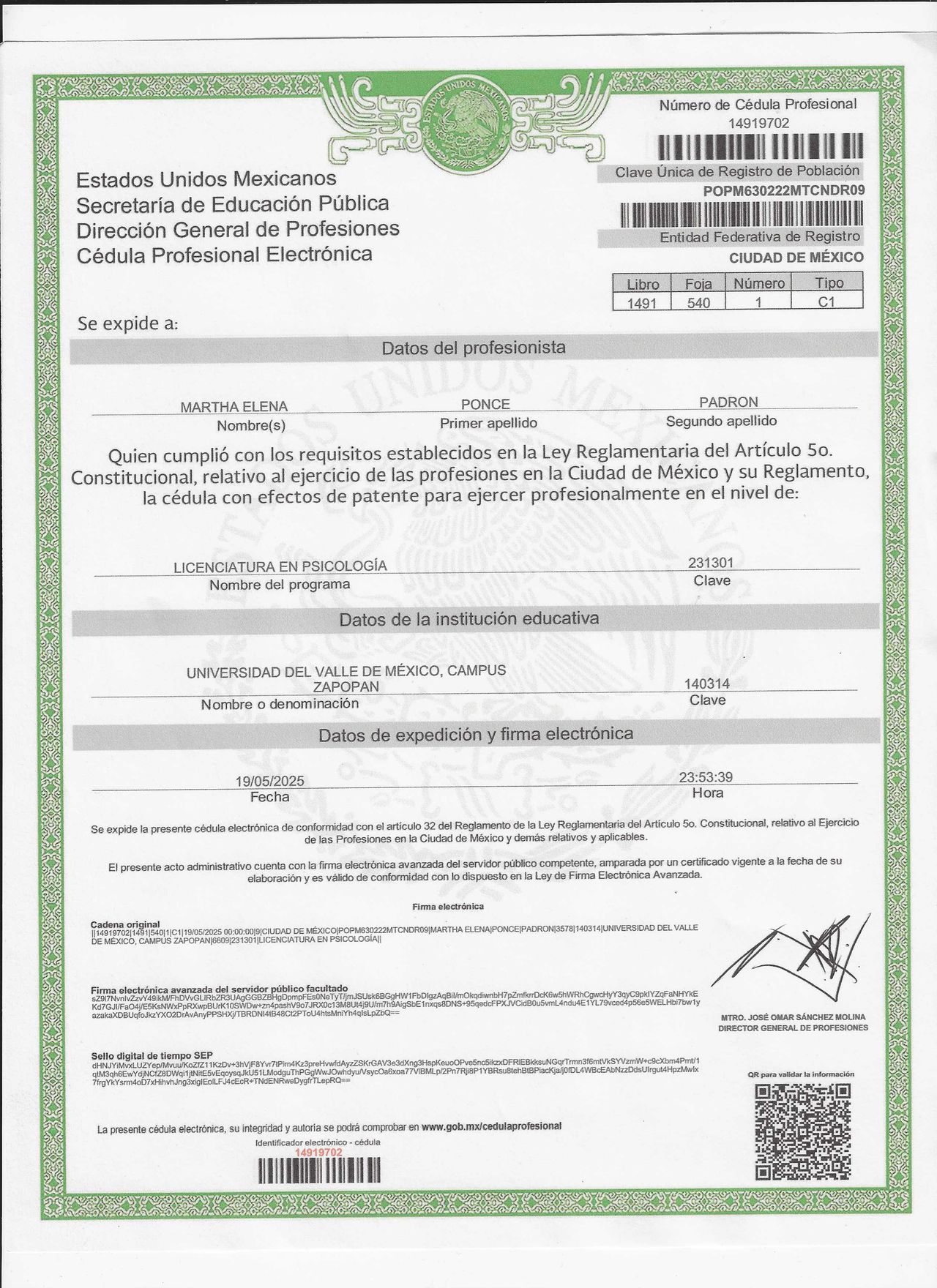 No. de cédula: 14919702