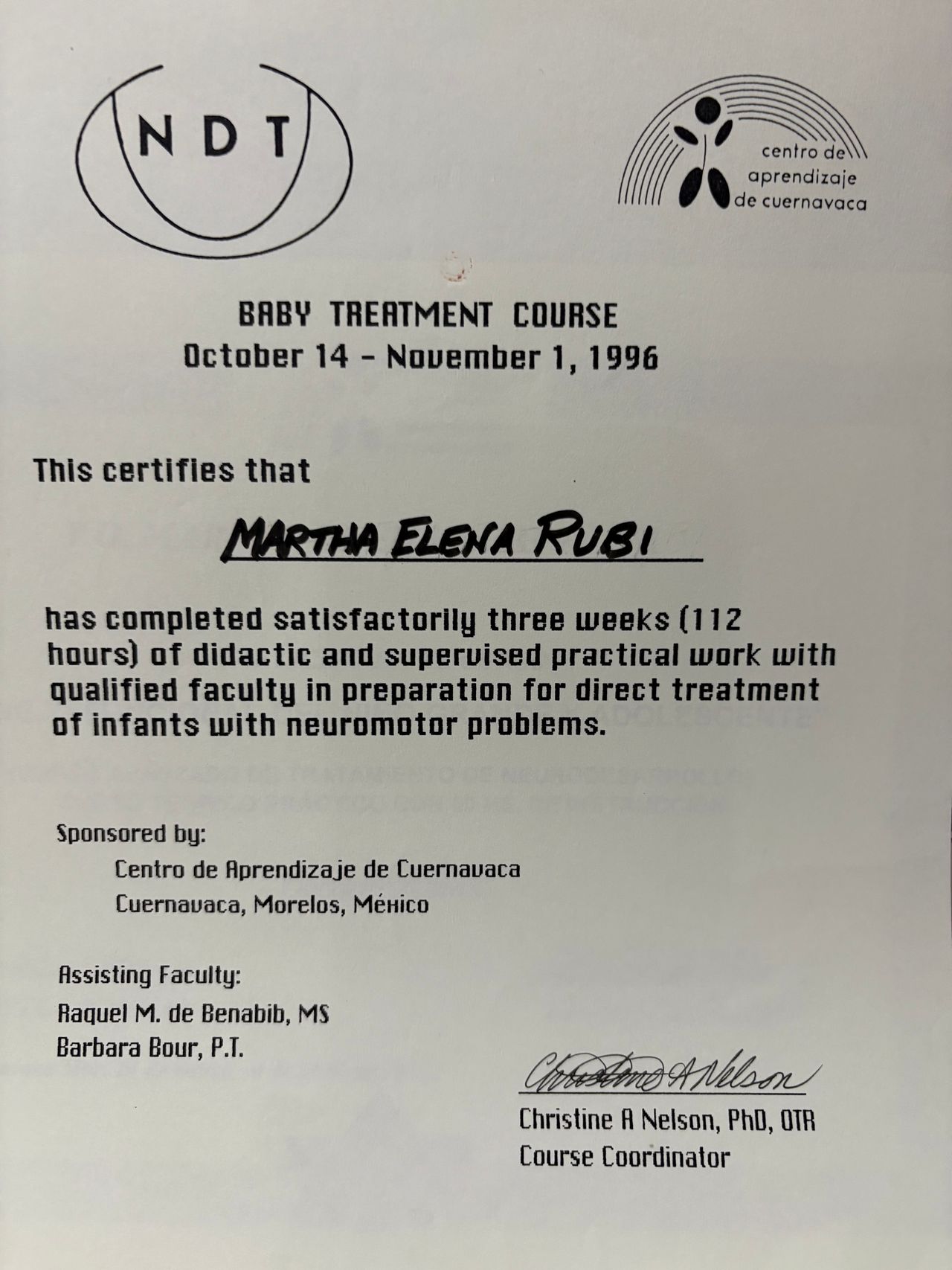 Soy terapeuta ocupacional especializada en neurodesarrollo infantil y certificada en el concepto Bobath e integración sensorial. Acompaño a bebés, niñas y niños con parálisis cerebral, retrasos en el desarrollo, síndromes genéticos o dificultades motoras, ayudándoles a alcanzar la mayor independencia posible a través del movimiento, el juego y experiencias significativas.