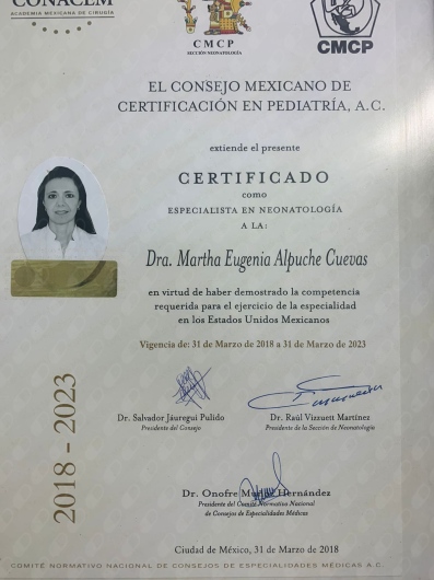 Miembro de la Sociedad Campechana de Pediatría, Miembro del Colegio de Neonatólogos de Yucatán