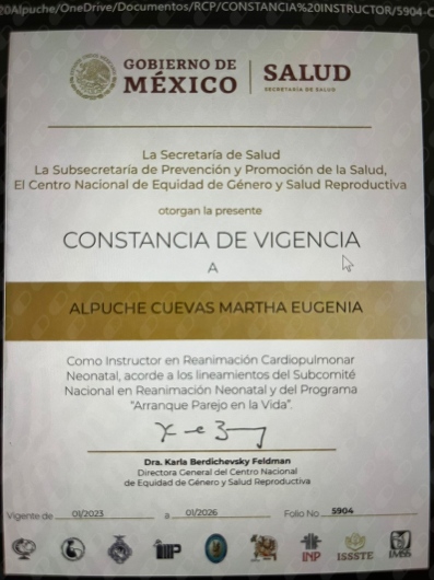 Instructor de Reanimación Cardiopulmonar Neonatal.