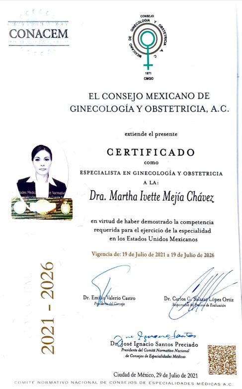 Soy la Doctora Martha Ivette Mejía Chávez, especialista en Ginecología y Obstetricia; realicé mis estudios universitarios en la Facultad de Medicina en Ciudad Universitaria, me especialicé como ginecóloga obstetra en el hospital de PEMEX avalado por la Univerdidad Nacional Autónoma de México.