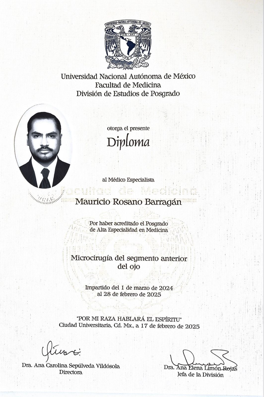 Hola, soy el Dr. Mauricio Rosano Barragán, médico oftalmólogo con más de 6 años de experiencia en el diagnóstico y tratamiento de enfermedades oculares. Cuento con Alta especialidad en Microcirugía de Catarata y Lentes intraoculares.