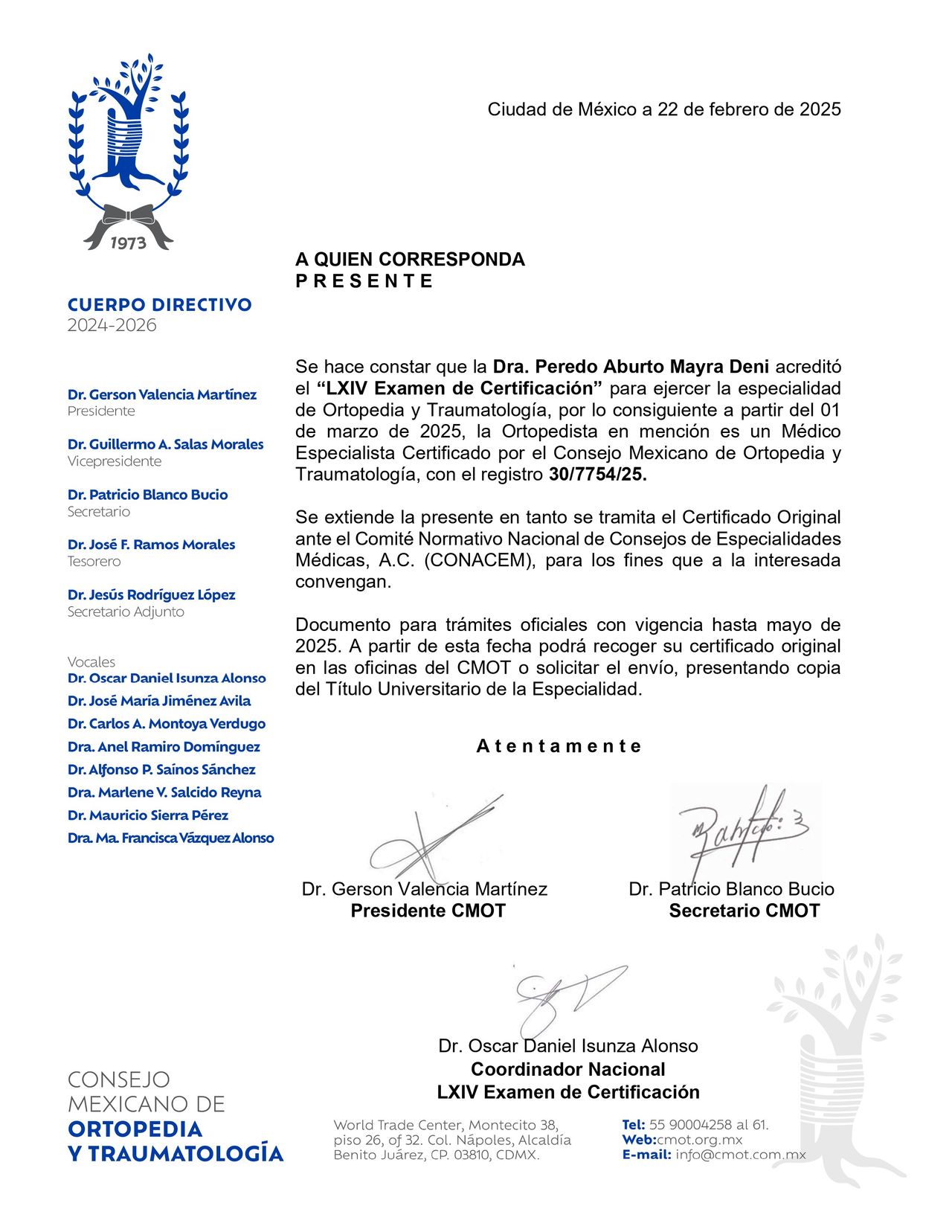 30/7754/25 | Consejo Nacional de Ortopedia y Traumatología