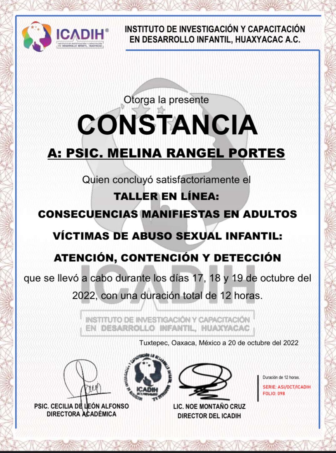 • Consultorio Psicóloga Melina Rangel • Primera visita Psicología •