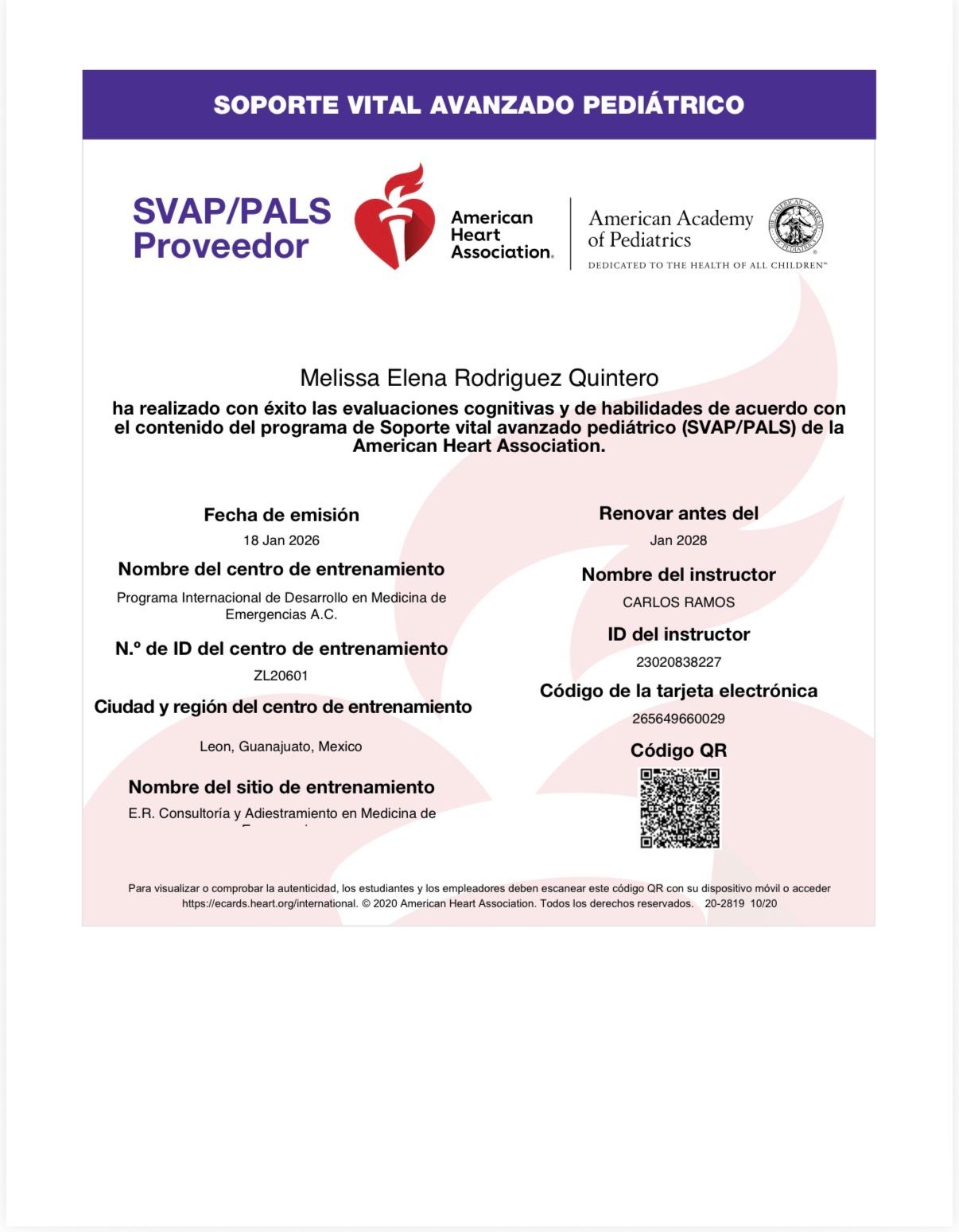 "¡Hola familias! Soy Melissa, su pediatra de confianza. Pediatra especializada en el cuidado de niños de cualquier edad. Obtuve mi licenciatura como Médico Cirujano y Partero en la Universidad Michoacana de San Nicolás de Hidalgo, en Morelia. Y luego realicé mi especialidad en el Hospital Infantil de México Federico Gómez, en la Ciudad de México. Mi enfoque se centra en educar para prevenir, así como tratar diversas enfermedades pediátricas. Me apasiona mi trabajo y siempre busco mantenerme actualizada en los últimos avances en mi campo para brindar el mejor cuidado posible a mis pacientes. Además me encanta cuidar de los pequeños aventureros, mantener sus sonrisas brillando y responder a todas esas preguntas curiosas sobre cómo funcionan sus cuerpecitos. ¡Acompáñenme en este viaje de salud, risas y crecimiento! #CuidadoInfantil #PediatraFeliz #SonrisasSanasConMelissa