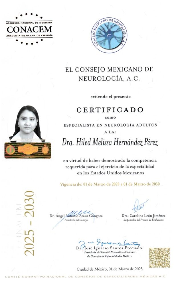 Hola, soy la Dra. Melissa Hernández, neuróloga egresada de Centro Médico Nacional Siglo XXI.
