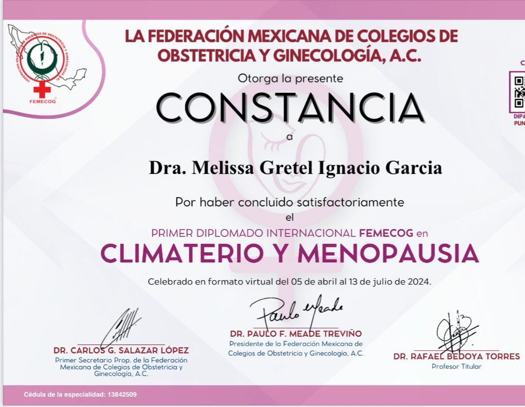 Además de diplomado en endocrinología ginecológica por lo que me encuentro capacitada para el manejo de trastornos menstruales relacionados con enfermedades endocrinológicas, el más común es Síndrome de Ovario Poliquístico.