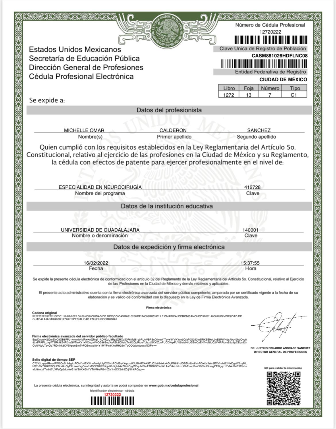 Dr. Michelle Omar Calderon Sánchez