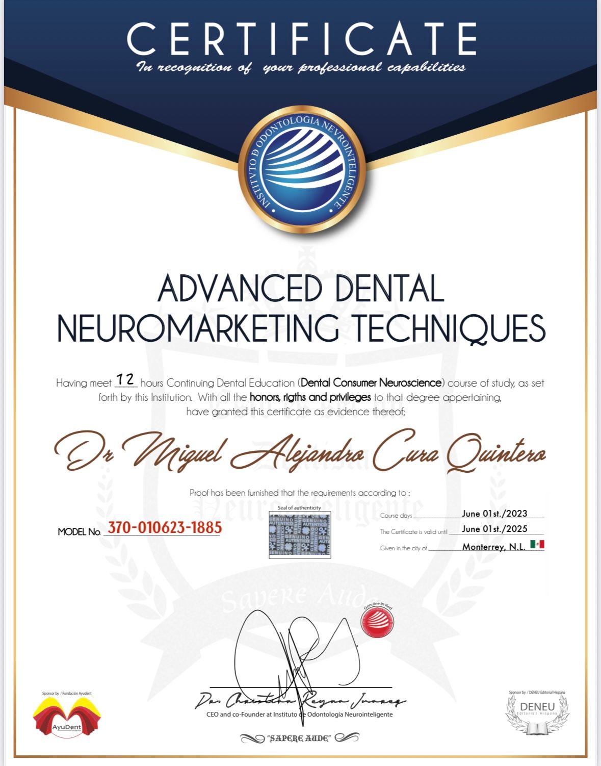 Un conocimiento en la odontología más actualizado y renovador, me lleva a ser más conservador y cuidadoso en mis tratamientos. Siempre teniendo la prevención dental como la clave para una excelente salud en general.