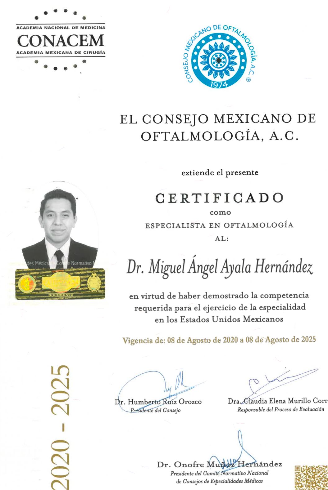 Cirujanos Oftalmólogos: - Dr. Miguel Ángel Ayala Hernández (Oftalmólogo/Retinólogo).