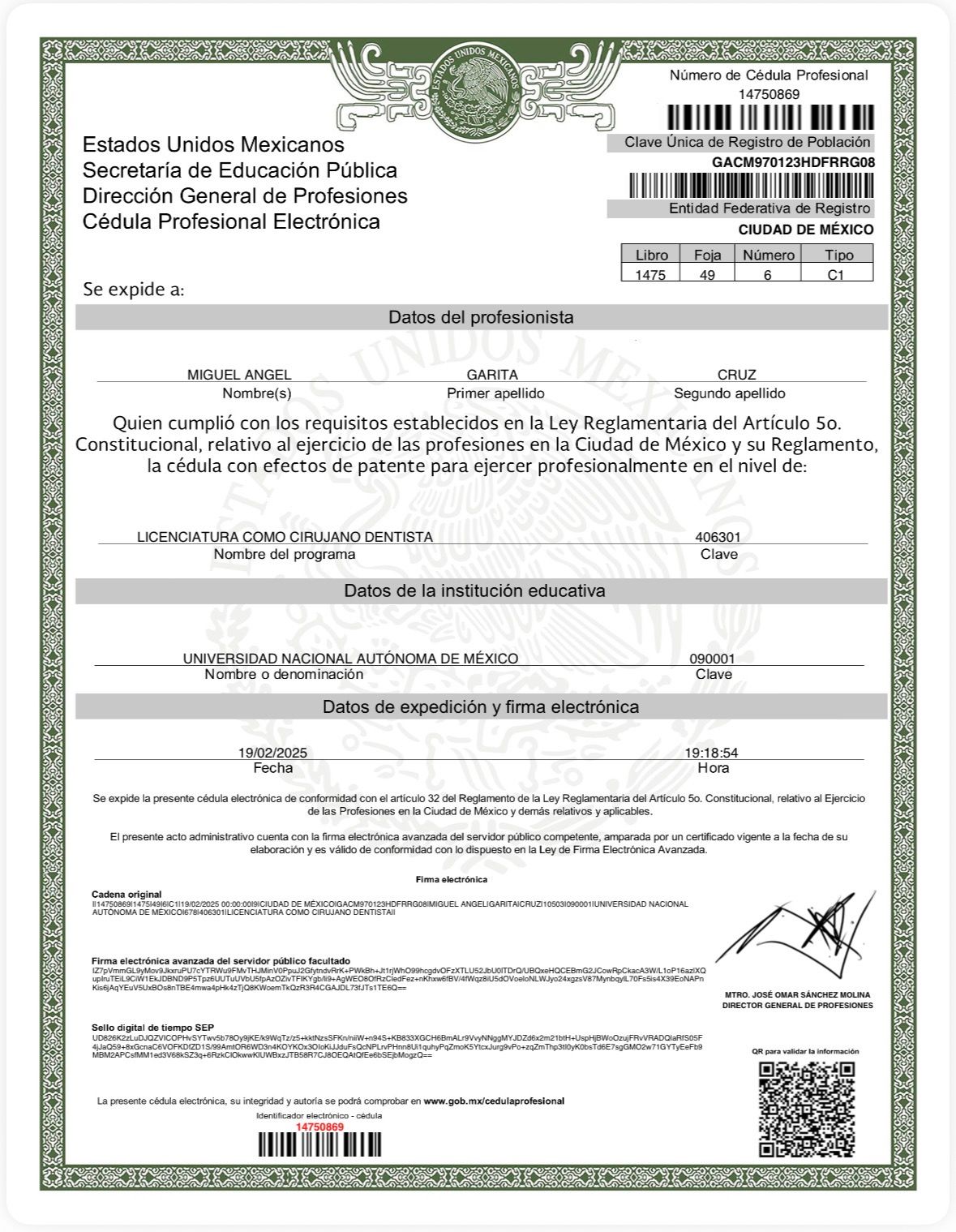 No. de cédula: 14750869