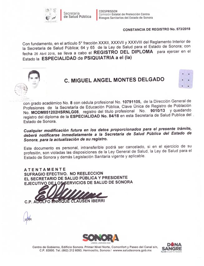 Soy médico especialista en Psiquiatría con más de 12 años de experiencia en medicina y más de 7 años especializándome en salud mental. Me gradué de la Facultad de Medicina de Mexicali de la UABC en 2012, y obtuve mi especialización en Psiquiatría en 2017, avalada por la Universidad de Sonora (UNISON), con sede en el Hospital Psiquiátrico Cruz del Norte.