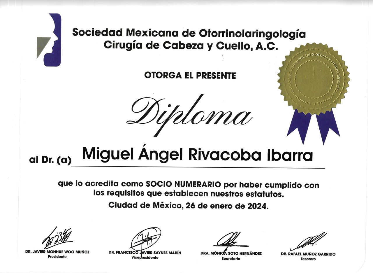 - Socio de la Sociedad Mexicana de Otorrinolaringología y Cirugía de Cabeza y Cuello A.C.