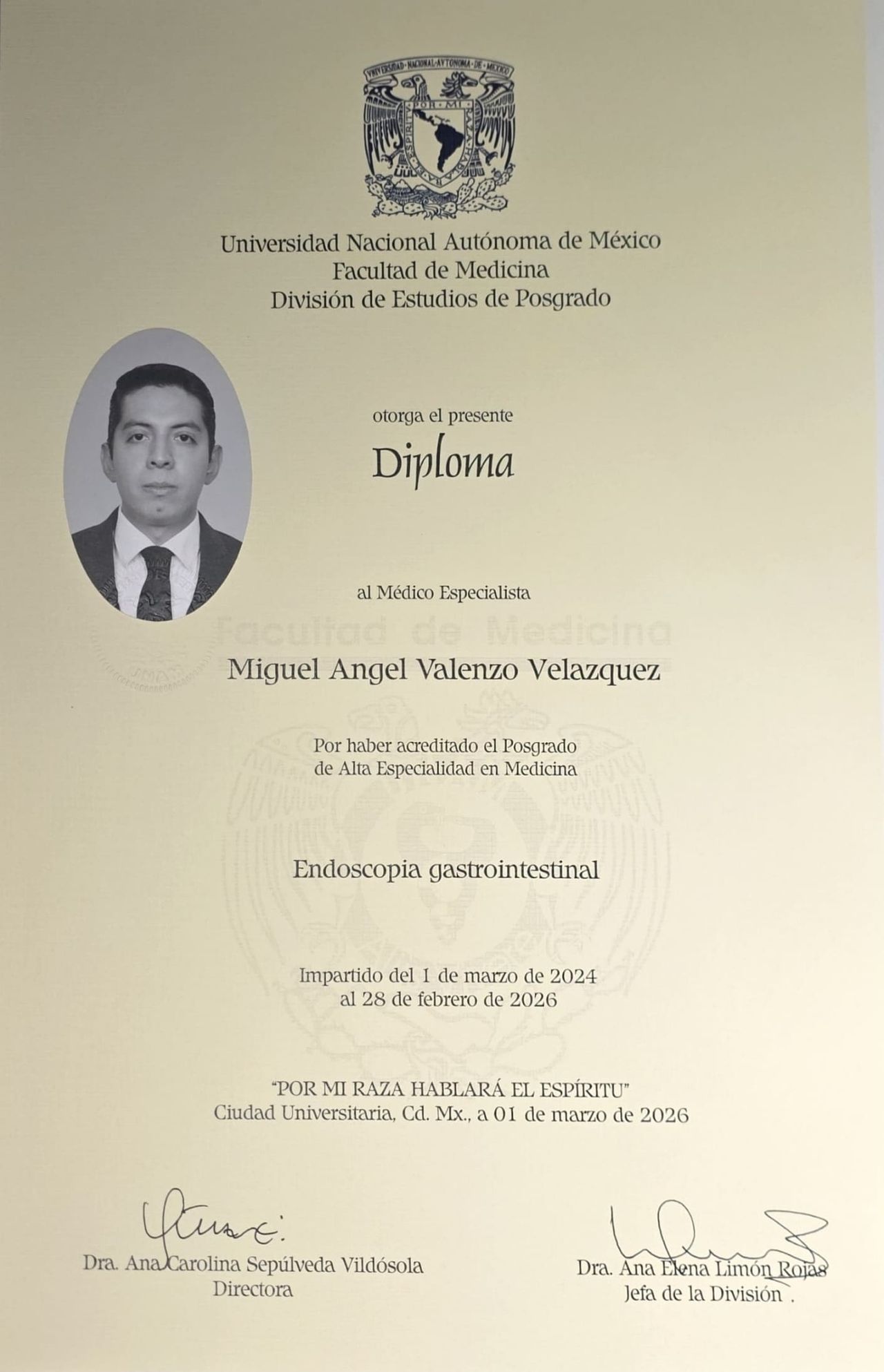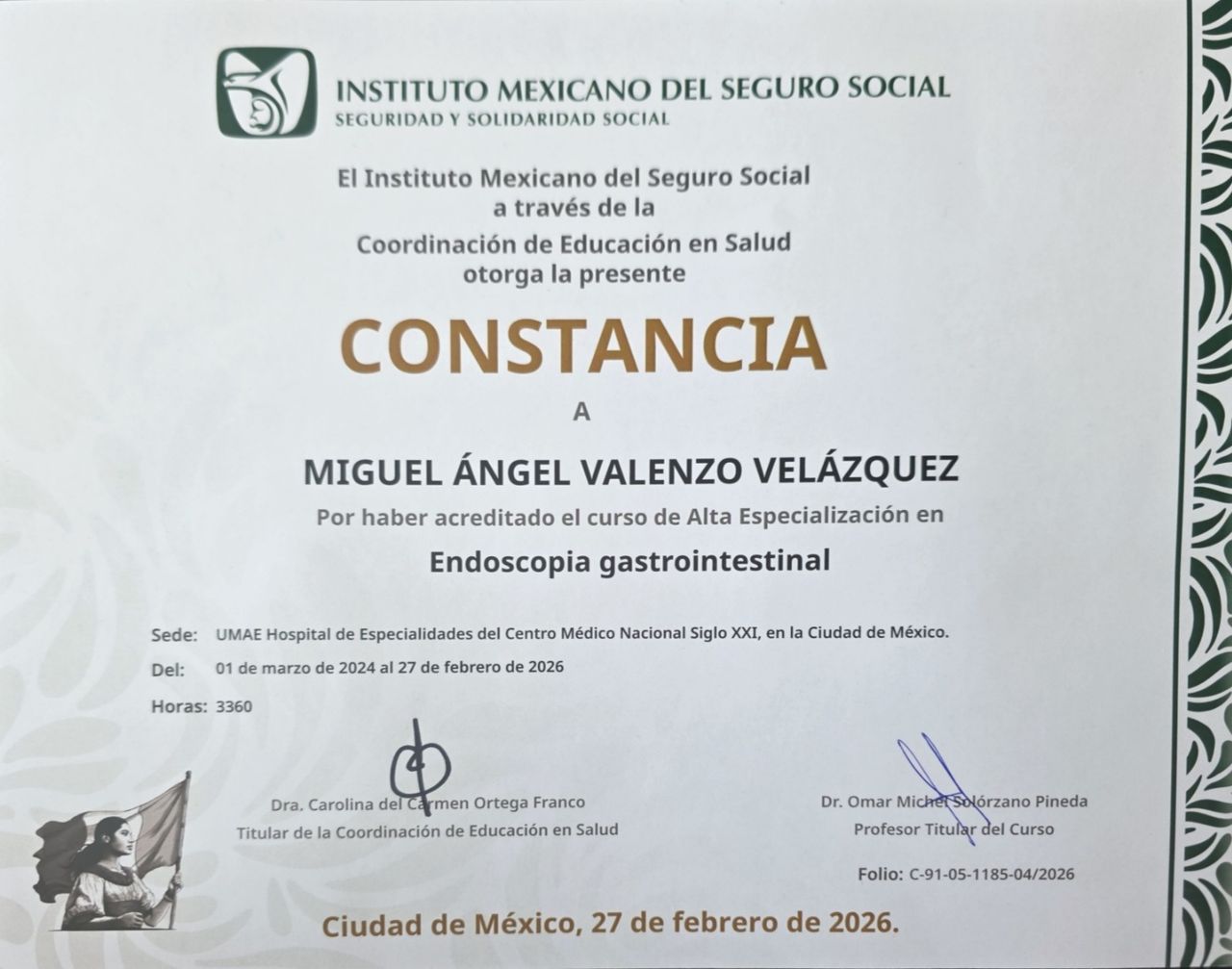 Especialista en Gastroenterología, egresado del Centro Médico Nacional de Occidente. Certificado por el Consejo Mexicano de Gastroenterología. Endoscopia Digestiva en Centro Médico Nacional Siglo XXI, avalado por la Universidad Nacional Autónoma de México.