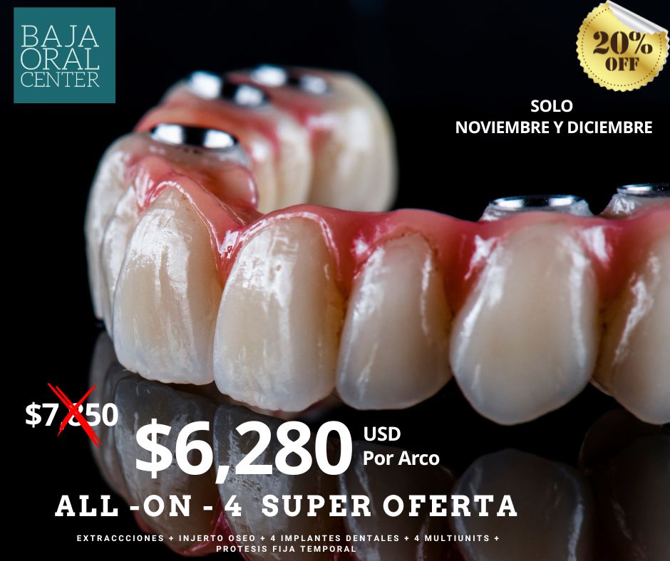 Con el tratamiento ALL- ON -4 en Baja Oral Center, recuperas dientes fijos y una sonrisa natural en un solo dia.