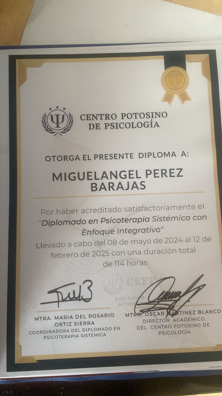 Miguel imparte su labor de una manera muy profesional, cuenta con los conocimientos para ayudar a las personas en identificar lo que bajo mi persona no quiere aceptar y en base a eso tener una solución y tener como resultado paz y bienestar mental y emocional. Miguel es psicólogo increíble el cual me ha ayudado mucho en mi proceso de sanación y alguien que tiene empatía y es directo de una manera adecuada, siempre tomando en cuenta la opinión y el consentimiento de la persona al hablar de un tema que podría llegar a sentirse hostil, en lo personal mis sesiones con el han sido una montaña rusa de emociones pero cumpliendo el objetivo de aceptar quien soy y lo que siento y estar bien con ello. Miguel es una gran y muy buen psicólogo y lo recomiendo ampliamente con las personas de mi circulo, pues me ha ayudado mucho como anteriormente lo he dicho, es el mejor.