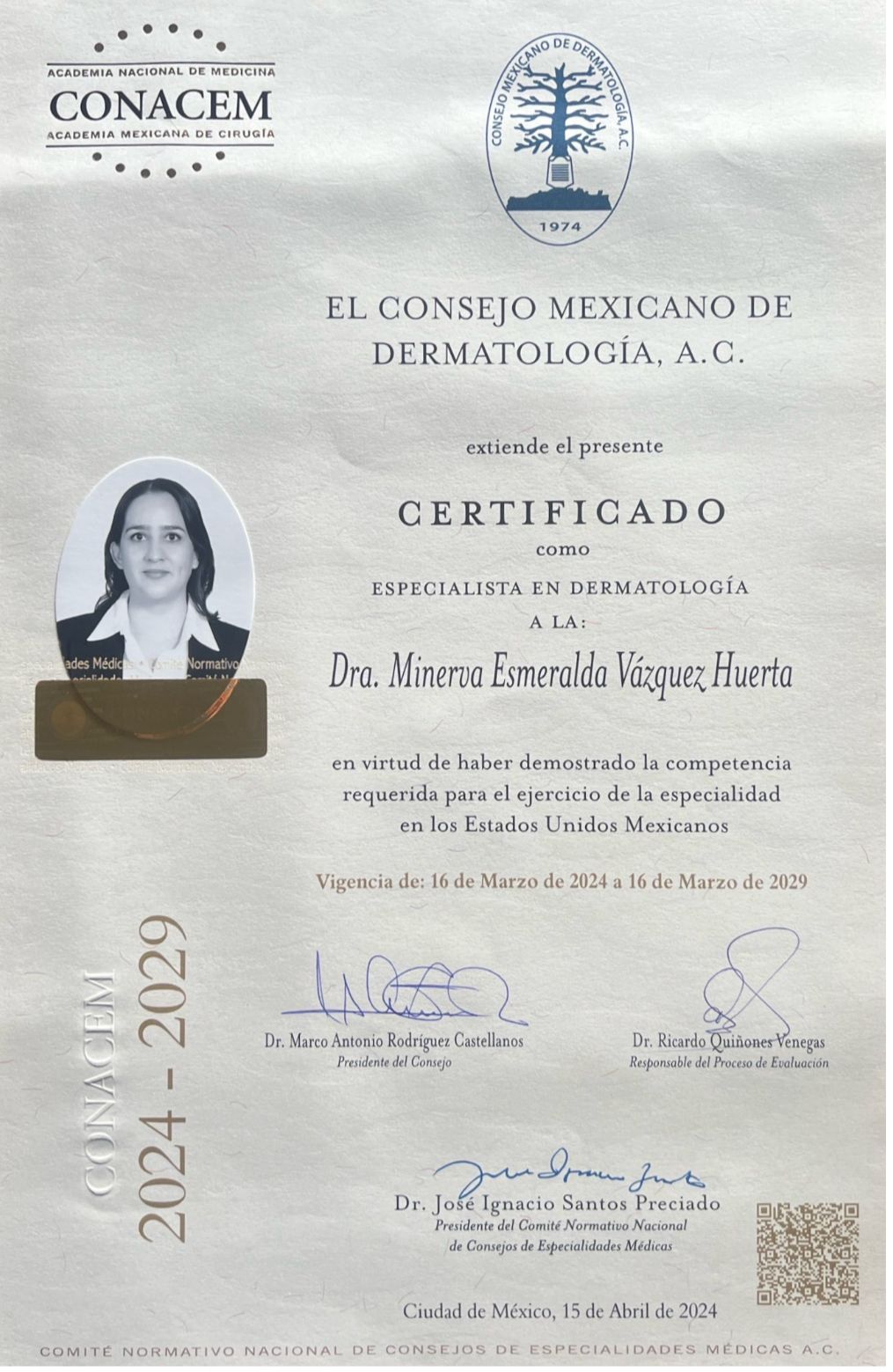 ¡Hola! Soy la Dra. Minerva Vázquez, Médico especialista en Dermatología.