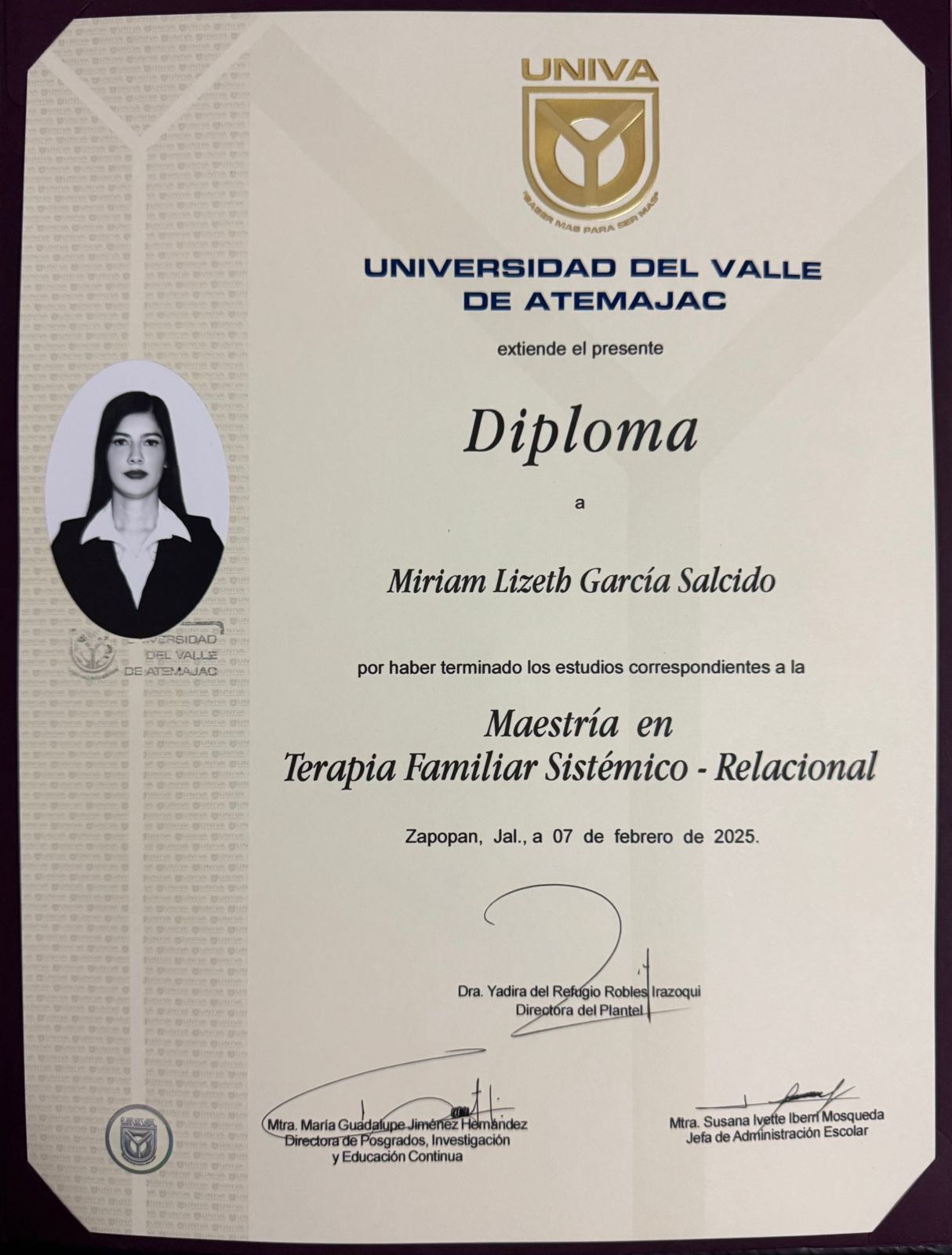 He tenido una excelente experiencia en mis sesiones con Miriam. Su profesionalismo, empatía y calidad humana me brindaron la confianza necesaria para expresarme con libertad. A lo largo del proceso me ayudó a comprender mejor mis comportamientos, emociones y pensamientos, proporcionándome herramientas muy útiles para aplicarlas en mi día a día. Agradezco profundamente su acompañamiento y dedicación, y sin duda la recomiendo ampliamente.