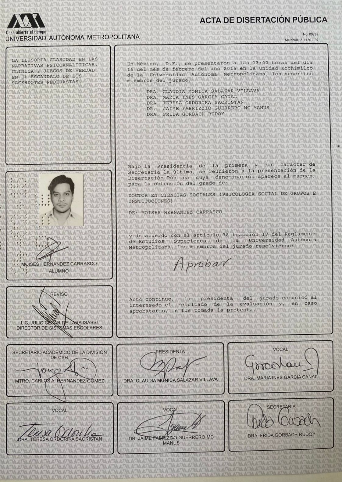 No. de cédula: 4597629