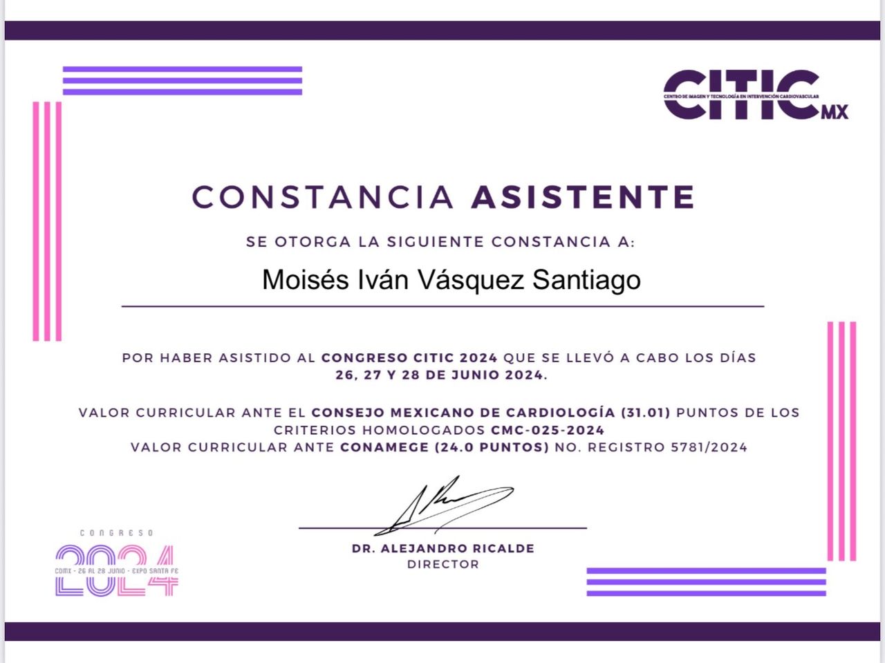 Actualmente me encuentro Certificado como Cardiólogo por el Consejo Mexicano de Cardiología.