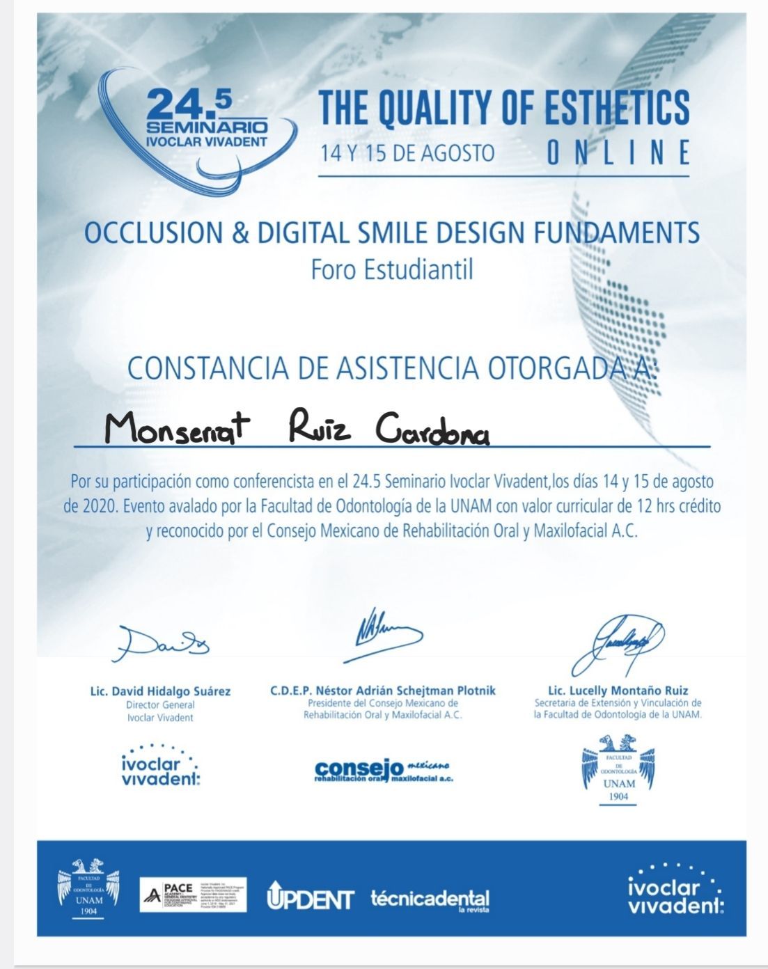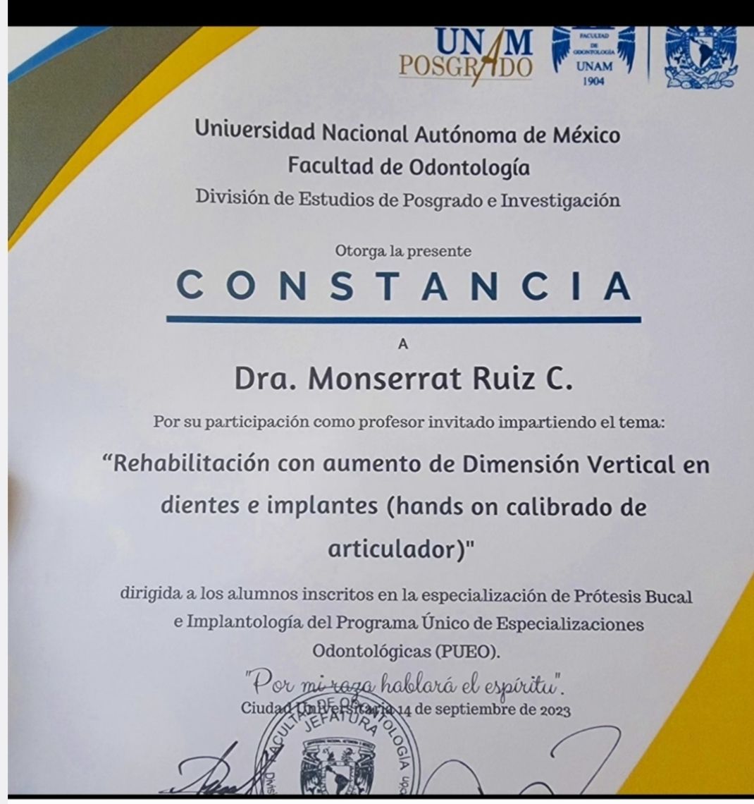 Excelente atención y profesionalismo en la consulta dental. La Dra. Monserrat Ruiz fue muy amable y explicó todo con claridad sobre mi tratamiento odontológico. Me sentí cómodo y bien atendido desde el inicio hasta el final. Su equipo también fue muy atento y eficiente. Los resultados superaron mis expectativas. 100% Recomendada !