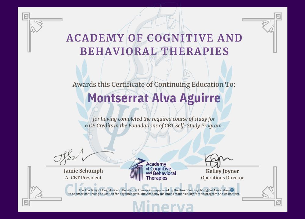 • Clínica de Salud Mental Minerva. • Terapia cognitivo-conductual (TCC) •