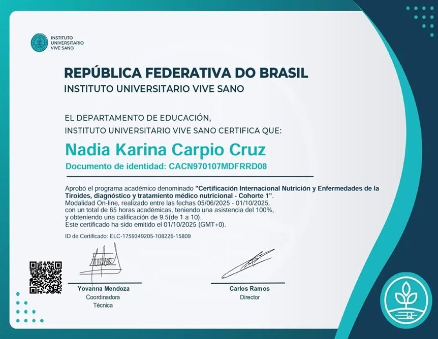 Especialista en consulta privada, reconociendo la importancia de la adecuada implementación del proceso de atención nutricional en beneficio de los pacientes para prevención y tratamiento de enfermedades crónicas.