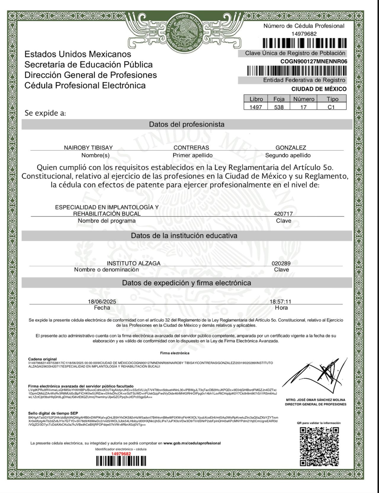 No. de cédula: 12950833 14979682