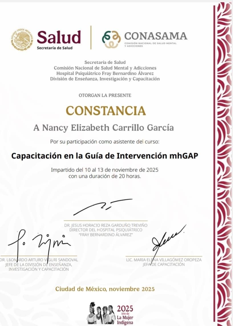 Soy psicóloga con especialización en neuropsicología clínica, psicometría y terapia sexual. Cuento con formación en diagnóstico clínico de psicopatologías, psicoanálisis, grafología y grafopatología, además de diplomados y cursos en prevención del suicidio, duelo, depresión y sexualidad adolescente.