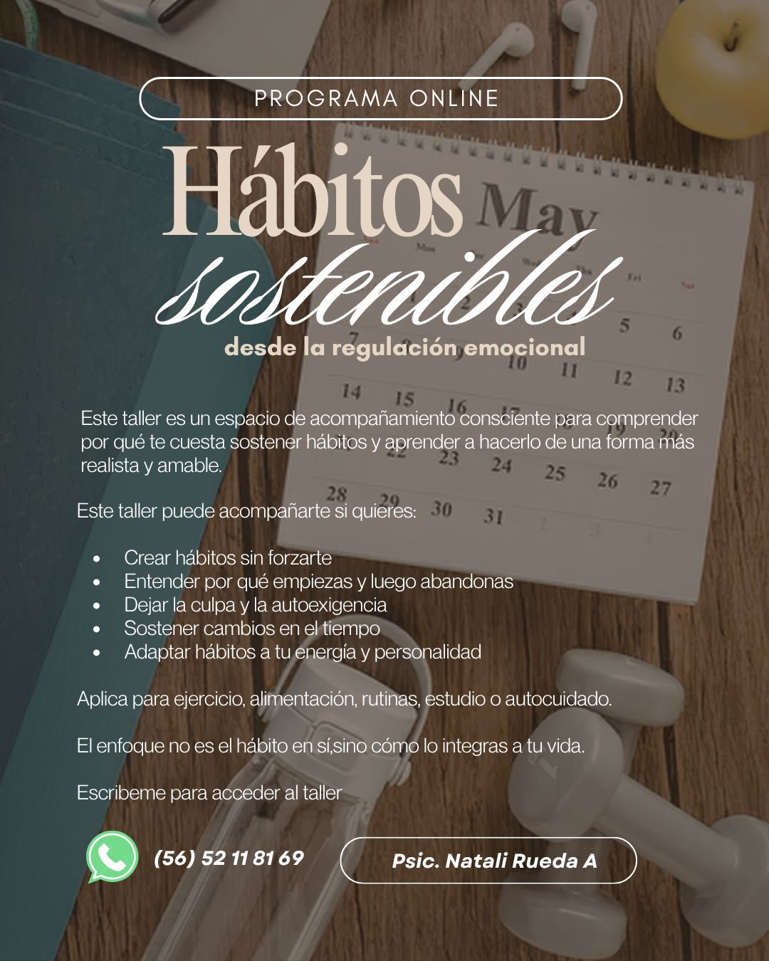 Un taller para comprender por qué te cuesta sostener hábitos y aprender a construirlos desde un lugar más consciente, realista y amable.