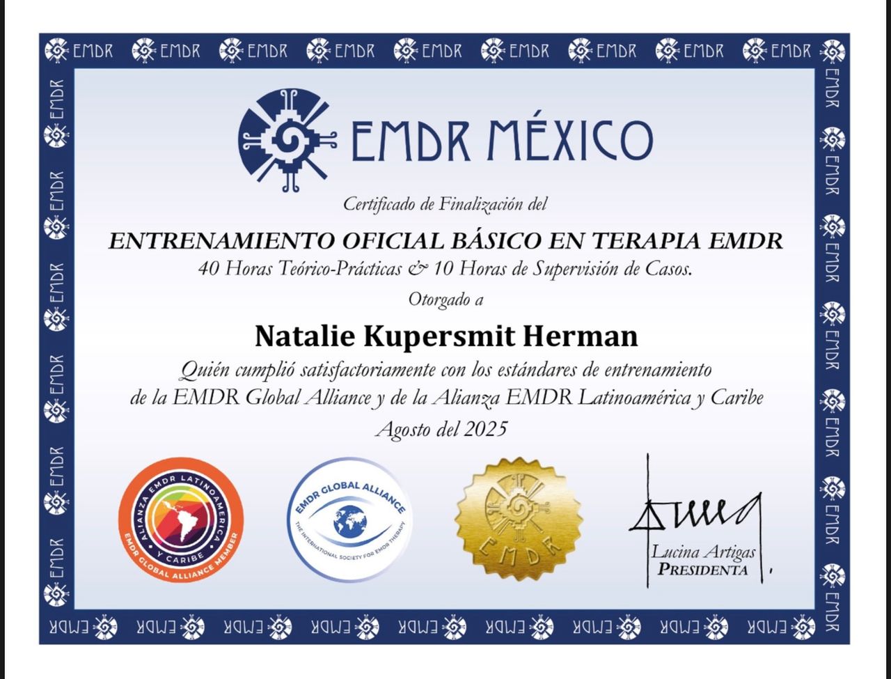 Natalie me ayudó a superar una etapa difícil en mi vida. Me enseñó herramientas para manejar la ansiedad que utilizo en mi vida diaria. Estoy sumamente agradecida y la recomiendo mucho.