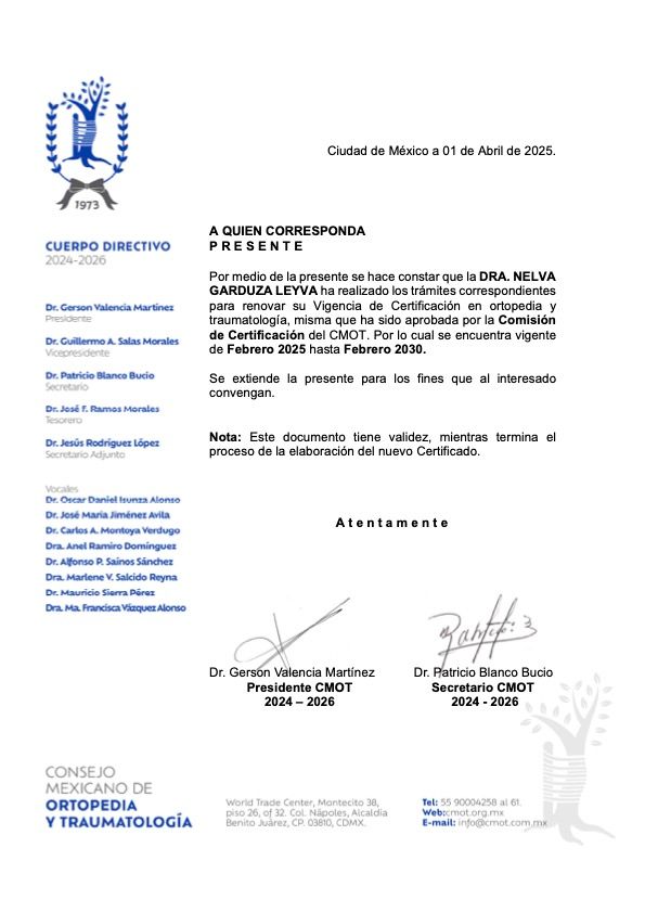 La Dra. Garduza es una gran profesional de la ortopedia, dedicada y comprometida con excelente trato al paciente y con mucho seguimiento, es una tranquilidad ser atendida por ella.