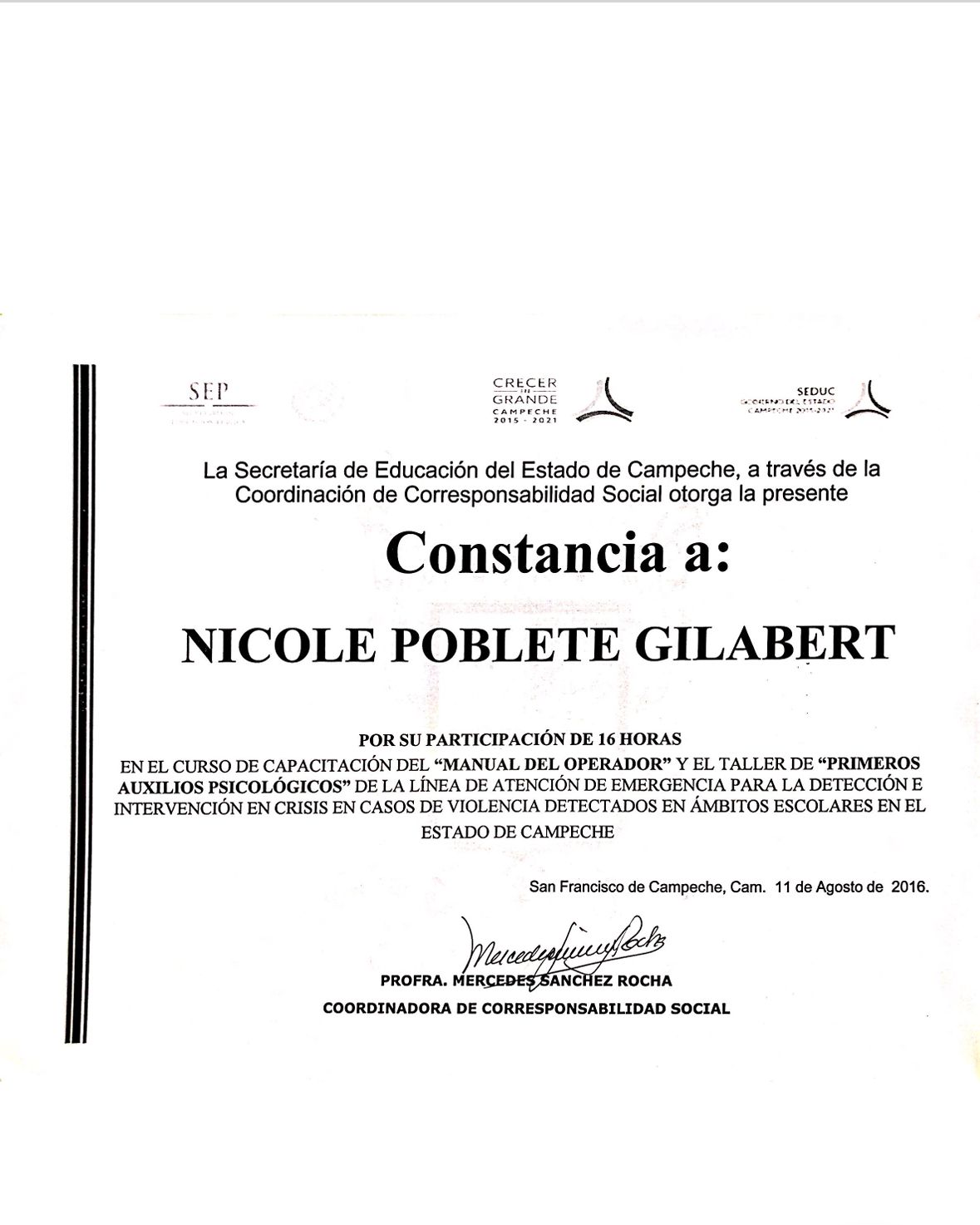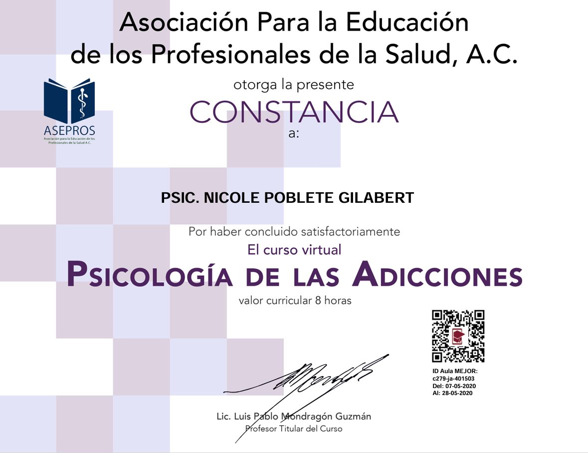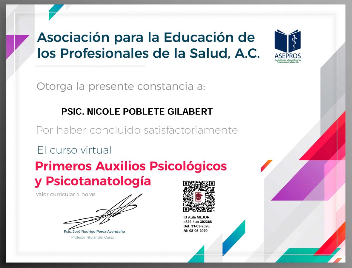 Soy Licenciada en Psicología, egresada de la Universidad Autónoma de Campeche (UAC), con cédula profesional 11910594.