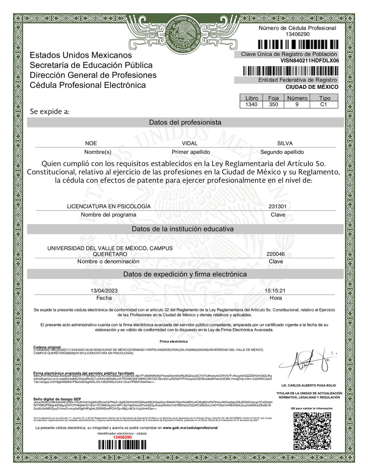 Lic. Noe Vidal Silva