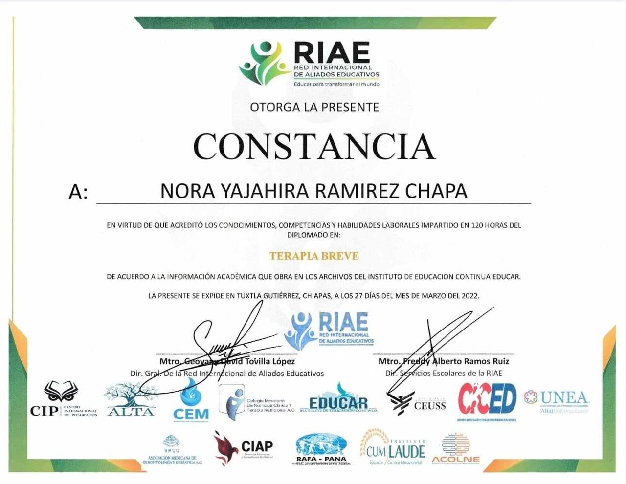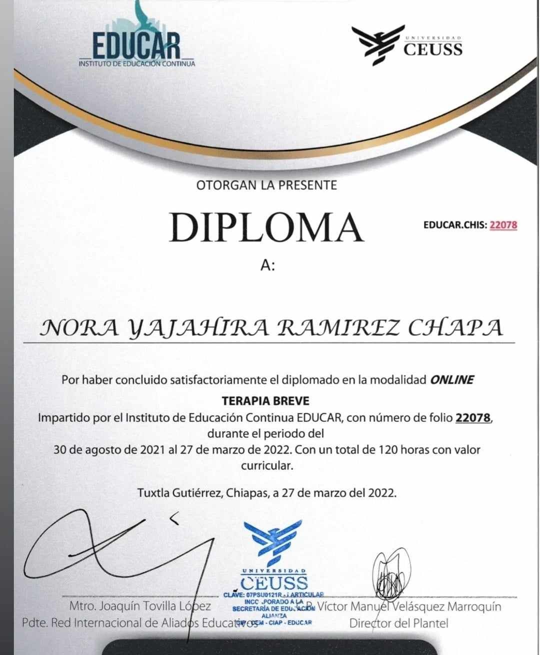 Lo que más valoro de Nora es el amor y compromiso que tiene por su trabajo, una persona super empática, amable, que ayuda a tratar los temas de tal manera que se sienten amenas y con un gran avance día con día, y cuando hay que hablar de temas serios, los toma con total espetó.
