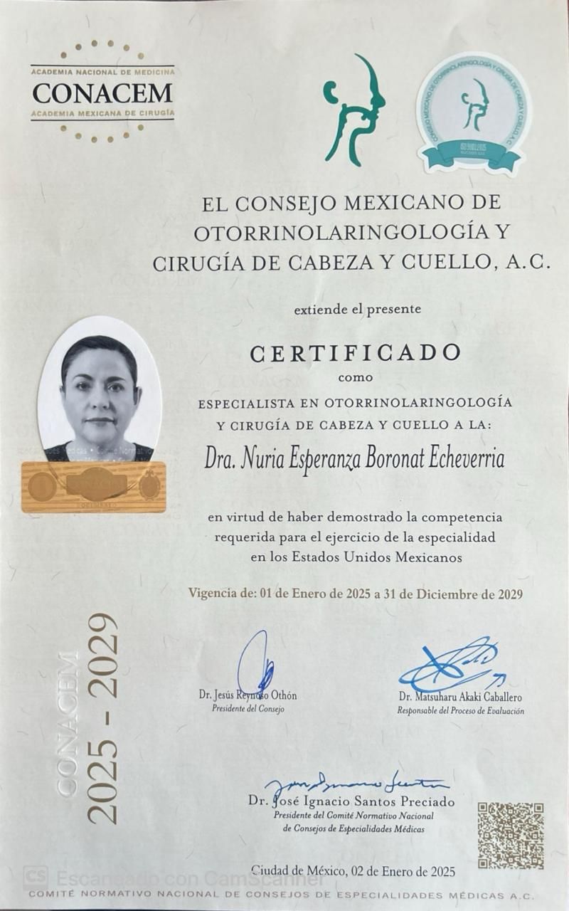 Medico con amplia experiencia en otorrinolaringología, cirugia de cuello, otorrinopediatria, cirugia endoscopica nasosinusal, tumores y cirugia funcional y estetica de nariz asi como cirugia de oido. Segunda especialidad en orl pediatrica, adiestramiento en cirugia de cuello, diplomado en docencia, M en C. Profesora de la subespecialidad de orl pediatrica, profesor ayudante de los cursos de orl y ccc y pediatria, UMAES pediatria y especialidades CMN SXXI. Miembro de la clínica de cirugía craneofacial UMAE pediatria CMN SXXI durante 10 años. Ex coordinador academico del examen de evaluación de subespecialidades para el consejo mexicano de ORL Y CCC. Ex presidente del colegio de orl y ccc pediatricas de México (Copeme). Actual tesorero de la sociedad mexicana de orl y ccc.