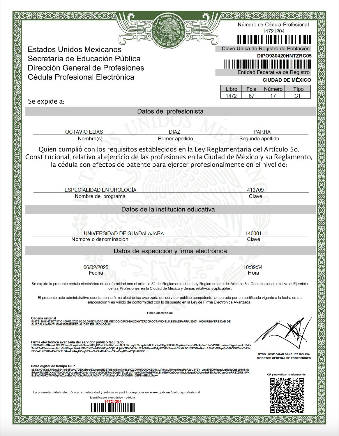 No. de cédula: 14721204