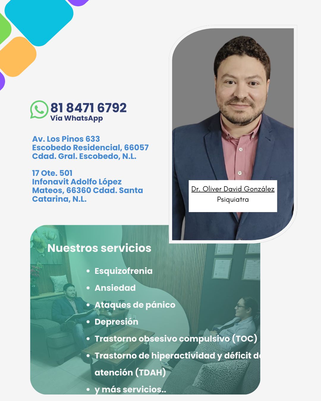 Soy Psiquiatra por la Universidad de Monterrey y el Instituto Mexicano del Seguro Social. Y estoy certificado por el Consejo Mexicano de Psiquiatría.