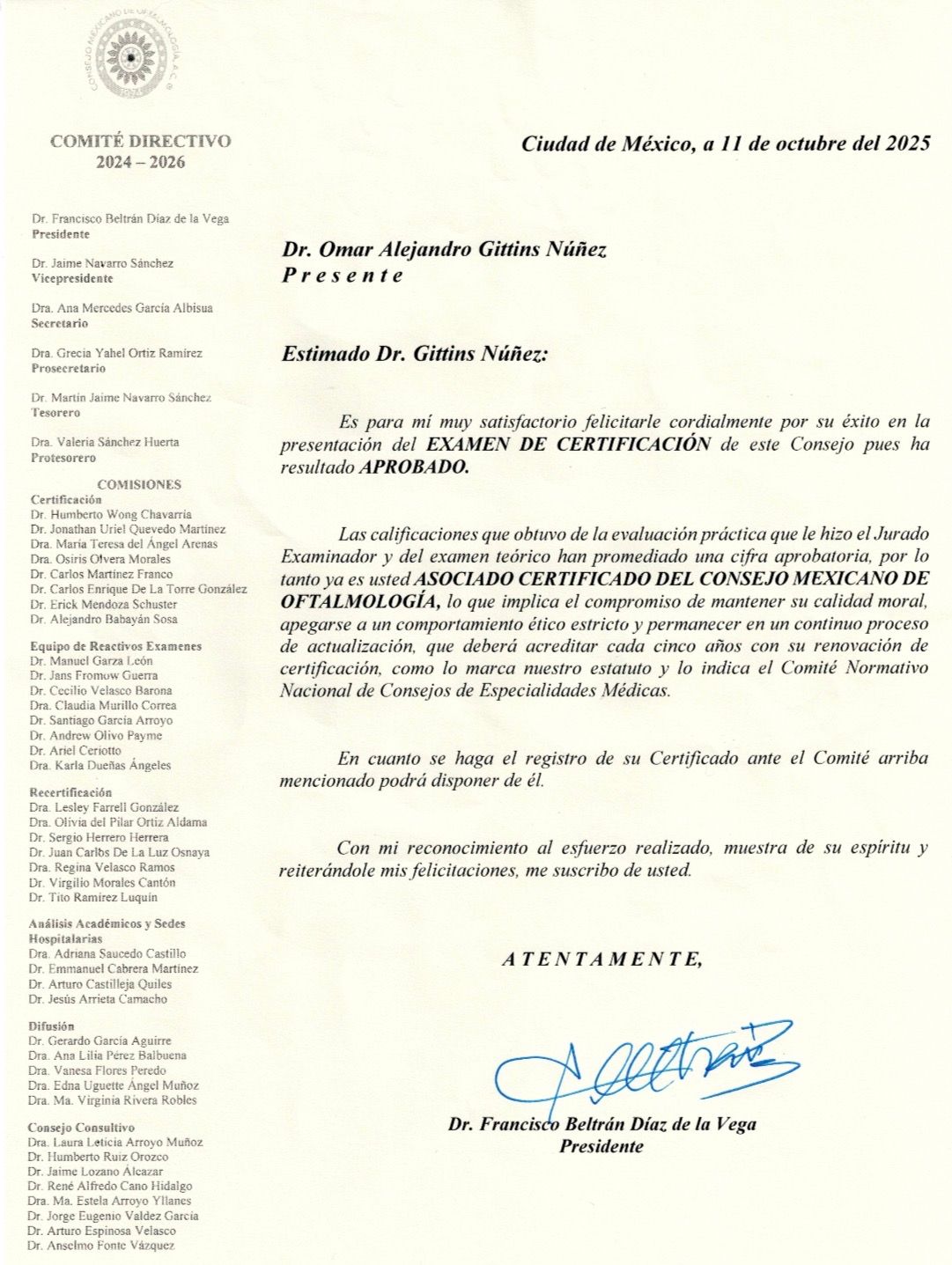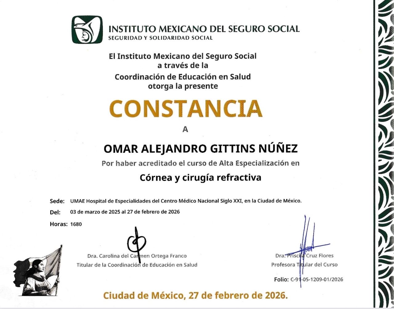 Médico Oftalmólogo con formación en el Centro Médico Nacional Siglo XXI.