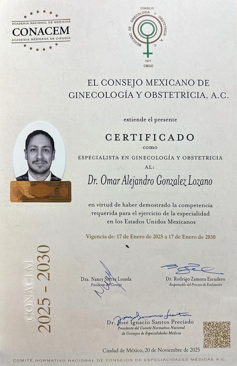 Cuento con formación complementaria en Colposcopía, Histeroscopia, Cirugia Laparoscopica, Climaterio, menopausia y sexualidad. Estoy capacitado en el uso de terapia Láser CO2 y HIFU en gineco-estética y síndrome genitourinario de la menopausia. Estoy certificado por el colegio mexicano de Ginecología у Obstetricia.