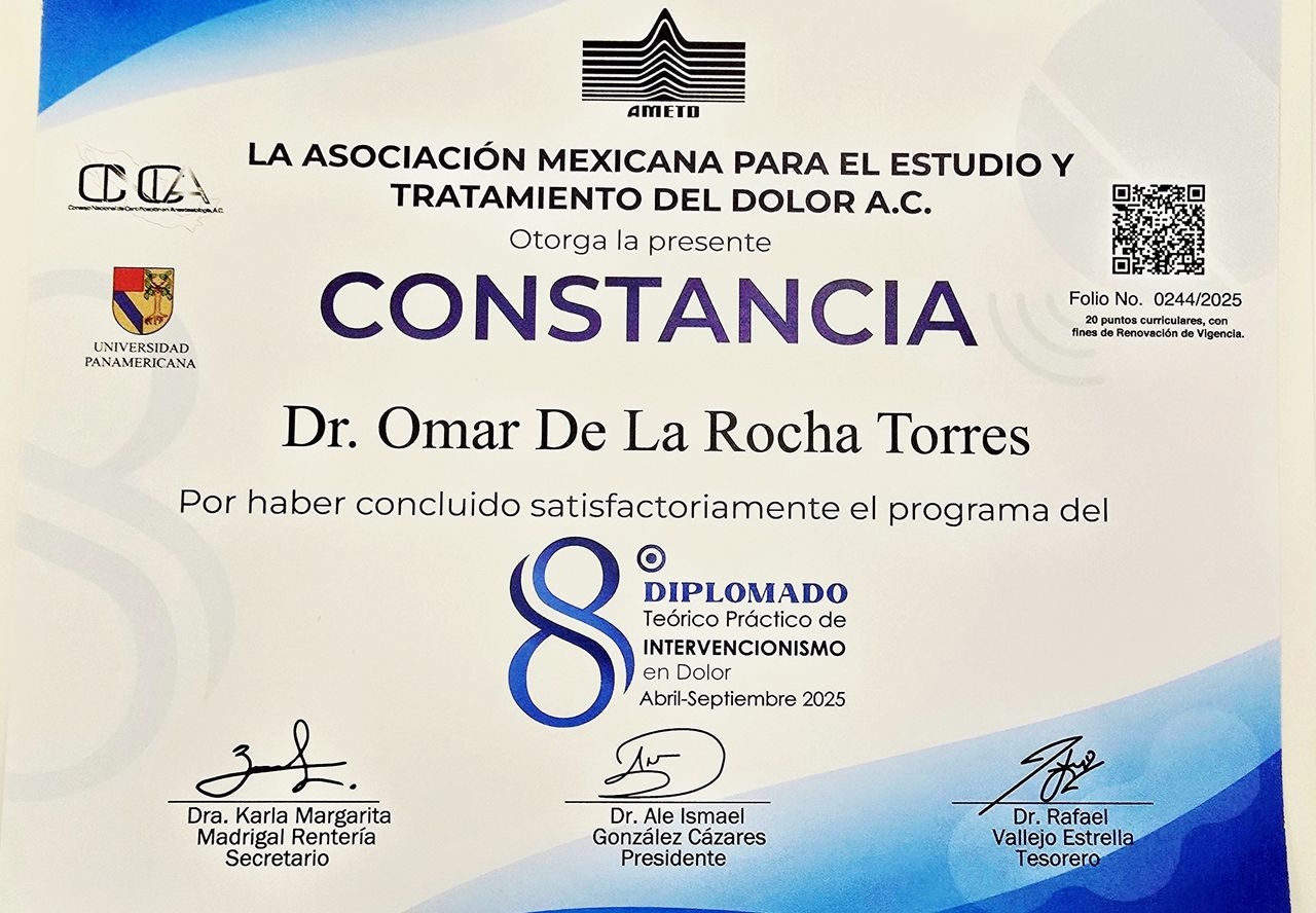 MEDICO ANESTESIOLOGO CON MAESTRIA Y DÍPLOMADO EN MANEJO DE TODO TIPO DE DOLOR AGUDO, CRONICO, NEUROPATICO Y ONCOLOGICO TANTO ARTICULAR, MUSCULAR Y VICERAL.