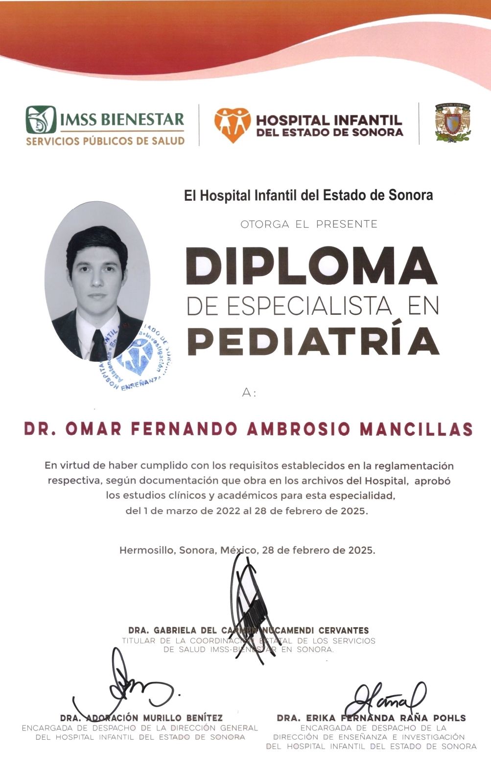 Hola, soy el doctor Omar Ambrosio especialista en Pediatría, vivo en Etchojoa, Sonora y atiendo pacientes en Huatabampo (consultorio), Etchojoa (domicilio) y Navojoa (CHSJ).