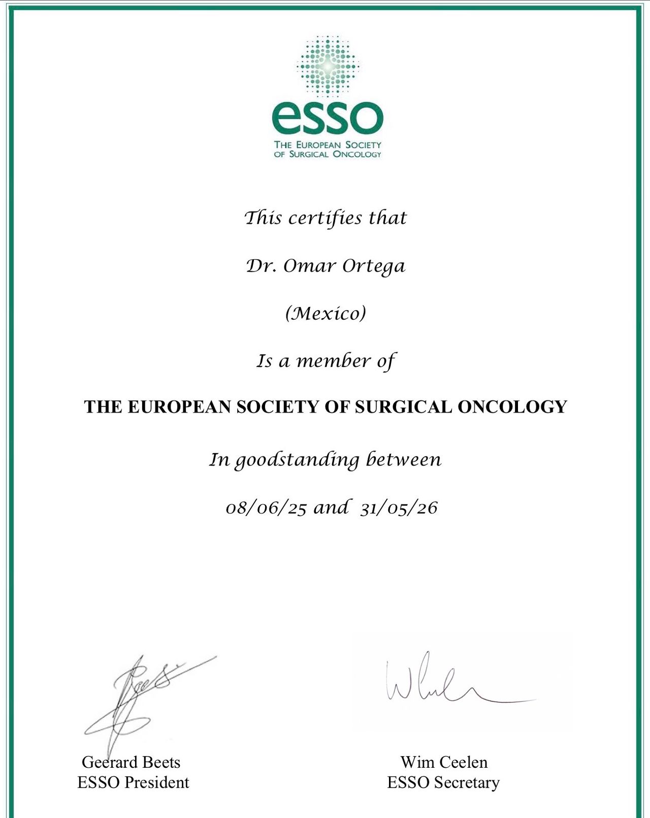 Estoy certificado por el Consejo Mexicano de Oncología y cuento además con alta especialidad formal y varios cursos internacionales en cirugía de mínima invasión en oncología.