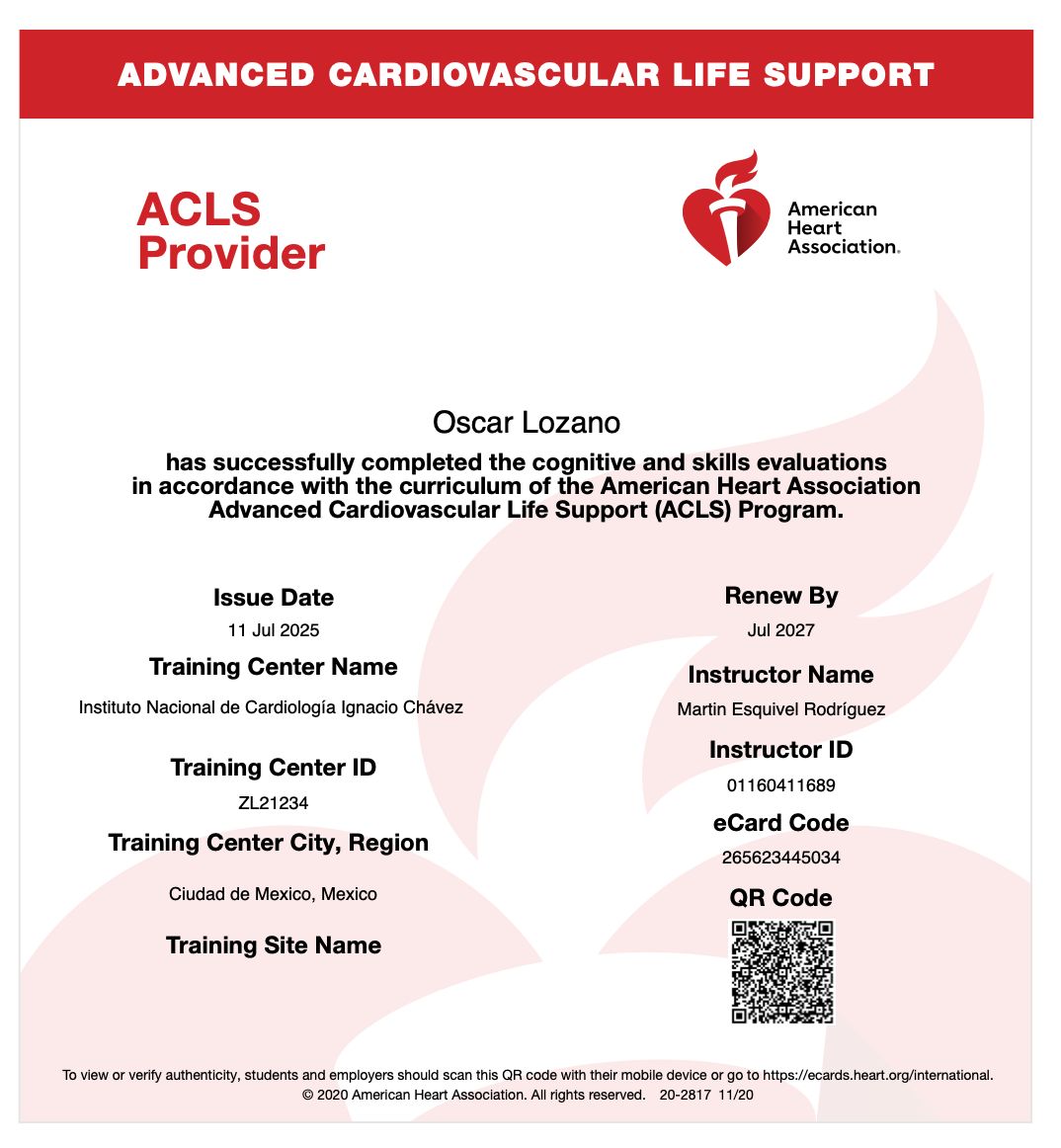 El Dr. Oscar Lozano es especialista en cardiología formado en el Instituto Nacional de Cardiología Ignacio Chávez y especialista en Medicina Interna por el Instituto Nacional de Ciencias Médicas y Nutrición Salvador Zubirán, su atención comprende atención clínica integral con experiencia avanzada en el cuidado cardiovascular.