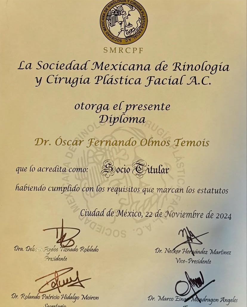 Alta Especialidad en Cirugía Plástica Rinofacial, UNAM.