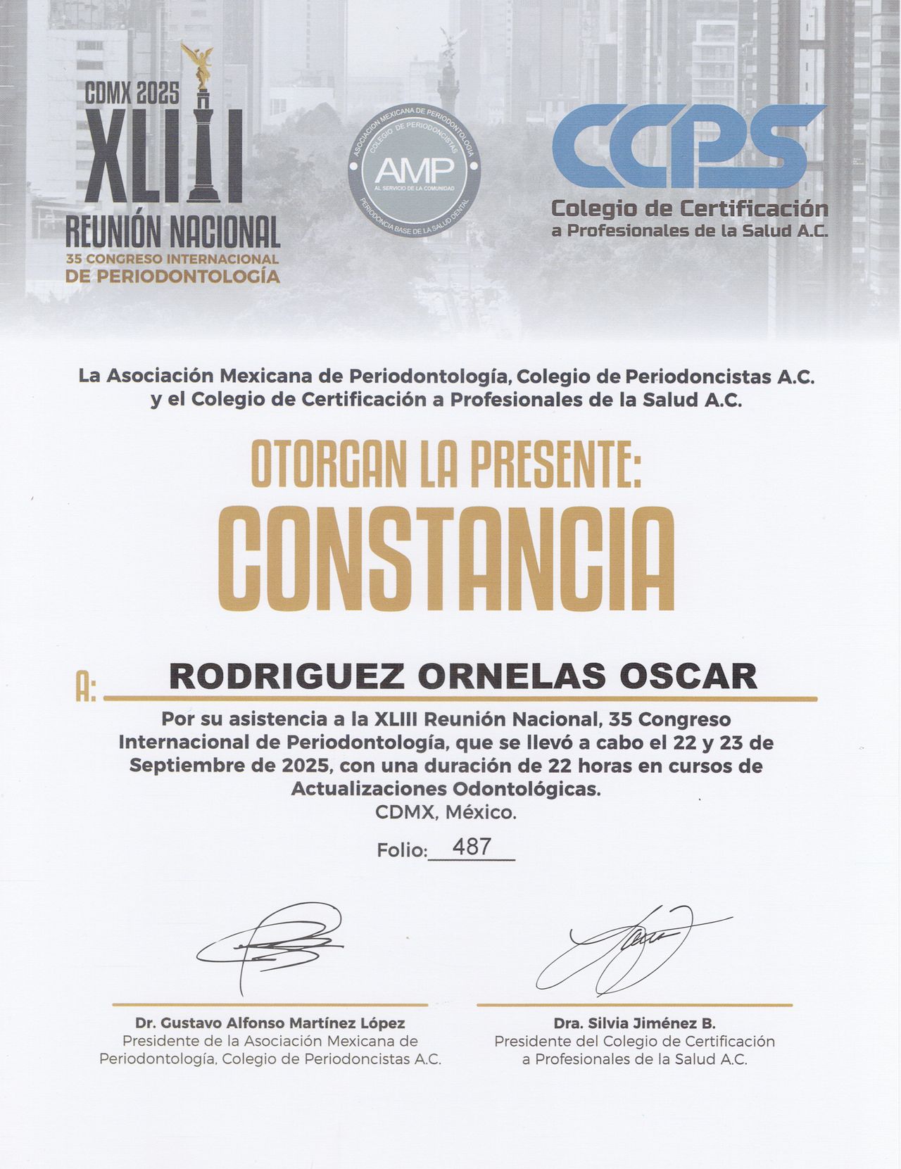 Soy cirujano dentista con más de 10 años de experiencia, con especialidad en Periodoncia e Implantes. Mi objetivo es ofrecer una atención cálida, personalizada e integral, priorizando siempre el bienestar y la comodidad de cada paciente y haciendo uso de teconología de vanguardia.